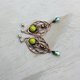 迷人的橄榄绿枝形耳环—完美融合了波希米亚与精灵的审美!采用手工铜线缠绕工艺,水滴造型的耳环缀以鲜艳的宝石,搭配镀银耳针,佩戴舒适。是奇幻爱好者与大自然拥护者的理想选择,适合任何场合赠送的独特礼物!