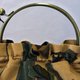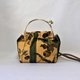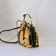 这款斜背包使用了米色底、印有蔬菜水果图案的旧和服腰带制作而成。