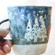 这只马克杯以瓷土手捏成型,透过高温烧成展现出坚固与耐用的特性,能安全盛水,成为日常饮用的理想选择。善用釉药的特性,绘出梦幻的森林雪景,杯身以深蓝绿色与白色为基底,局部流动的深浅交叠变幻多端,呈现魔幻森林。宛如森林雪景般渲染,带出自然侘寂的手感美学。