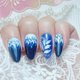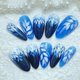*使用繁复技法绘制成多层次飘飘然的叶子,搭配着凉凉的夏夜印象色泽,有清透的凉意,也有深夜的星空熅熅之感。