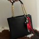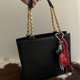 金色鱼骨链设计细致别致,与柔软黑色皮革形成完美对比,整体包身挺括却不失柔软触感。容量充裕,可轻松收纳 iPad 及日常用品,兼具实用与美感,无论通勤或日常外出皆相当合适。