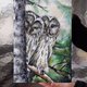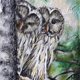 使用纹理粘贴成功地传达了木材的纹理和猫头鹰的体积、它们的羽毛和移动的头。深浅不一的绿色和棕给人一种完全沉浸在森林氛围中的感觉。