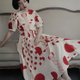 微泡泡袖設計,提升整體甜美度,不規則波點帶著慵懶氣息裙身有內襯,不用擔心走光,腰間系帶可系身前也可系身後