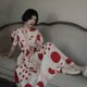 - 經典圓領+門襟排扣,簡約複古 微泡泡袖設計,提升整體甜美度,不規則波點帶著慵懶氣息裙身有內襯,不用擔心走光,腰間系帶可系身前也可系身後 法式少女專屬的小裙紙