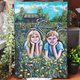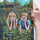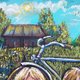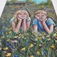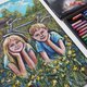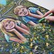 纸上,油画棒描绘了孩子们——一个女孩和一个男孩躺在绿色的草地上。他们身后有一辆他们最近骑过的自行车。孩子们的周围有很多黄色的蒲公英,在风中轻快地摇曳,还有淡蓝色的矢车菊。远处,你可以看到舒适的村屋,周围绿树环绕。