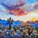 亚利桑那州绘画。原创压克力画。仙人掌画。日落天空艺术。
