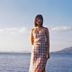 Maxi dress made of Pastel Tartan Linen with side zipper
