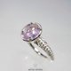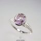 这款戒指以带有紫罗兰色调的淡雅尖晶石,镶嵌于带有唐草和镂空图案的底座上。