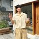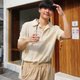这件衬衫我们在领口增加了钮扣设计,可以微开 (-‿◦) 增添一丝性感,同时也让透气性更好。