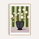 《绿幕上的白花 White Blossoms on Green》以极简却富对比的色彩为主轴,融合插画与设计思维,重新诠释经典静物花卉主题。从直线背景到条纹花器,画面在几何与自然之间取得巧妙平衡,展现一种当代花艺的美学语言。