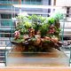 在压克力板制作的架构上,以天然的石材、沉木、层层叠砌流水景致。配上青翠艳丽、层次分明的植栽以及悠游水草间的鱼儿,赏心悦目。