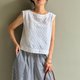 白色小城/法式优雅白色蕾丝纯棉提花船领短版小背心/背后排扣100%棉
