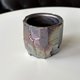 切削的坯体承接落灰痕迹,青蓝、铁黑、红铜与星光金的金属光交错,显现窑火变化的神秘层次;迎火与背火面的反差,在手工切削创造的特殊立体造型上相互映衬,进一步丰富了作品的视觉效果,值得收藏。