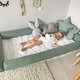 The bumper consists of outside removable cover, and inner cover and a filler. The outside cover consists of 100% cotton fabric and has a zipper in order to wash it if necessary. Inside, we use a fluff filler, which is located in the inner case, it is safe for children and used for children's pillows. At the edges of the bumpers there are ropes with which you can tie the bumper to the bed frame or tie the bumpers together.