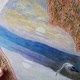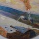 希腊北部凯尔基尼湖国家公园湖面上宁静的日落景象。两只优雅的鹳鸟沐浴在平静的水面上,沐浴在夕阳的光芒,映照出夕阳西下的宁静之美。猫情侣形状内部的风景和鸟是用油画绘制的,而外部是由结构糊制成的并用丙烯酸绘制的。这幅画属于艺术家的系列作品“猫与希腊:现实与梦想”。