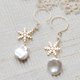 A piercing earring that combines delicate snow charm and ornate poppy pearl.