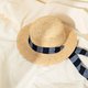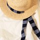 - - 长带草帽 - 拉菲草纸编织草帽 - 灰蓝条纹长织带妆点 - 简单好搭 为炙热的春夏加入一丝清爽