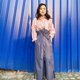 商品材质:聚酯纤维/棉/丹宁布料 商品尺寸:(cm) 胸围 50 肩宽 58 袖长 48 衣长 135 (自肩膀算起) 裙长 97 试穿报告 燕 157厘米/45公斤 衬衫穿起来宽松,裙子约略到脚踝,有绑带,尺寸弹性大,free size