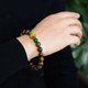 **〔 简介 〕:**新款原创手串,10mm加里曼丹九分沉搭配金虎眼水晶。手工打磨,油脂饱满,色泽淳正,油脂线形纹路自然通透。克重约15.1g。关注设计馆送优惠券!