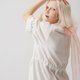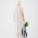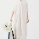白色小立领五分袖绑带洋装,前开式钮扣暗门襟设计,可当罩衫或洋装两穿,扣腰带抽皱绑带可自由调整穿搭风格,下摆开衩行走方便又带一些随性的率性,品牌织标小巧可爱点缀,是一件充满细节优雅的单品。
