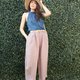天然亚麻料松紧长裤,通风、版型美、活动方便