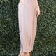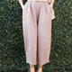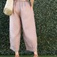 - 天然亚麻料松紧长裤 裤尾褶线设计 - 粉褐色