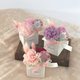 日本不凋康乃馨、日本太阳玫瑰、不凋绣球与适合花材。
