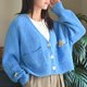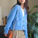 这款外套的架构是传统拉克兰毛衣的变化款,修饰了肩膀部分的版型,增加舒适度。由后领起针往下织,主体编织完成再挑针编织口袋。于毛衣清洗定型后,缝上钮扣与刺绣图案。