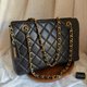 这款 Chanel Vintage 黑色菱格纹双链条肩背包,采用柔软丰盈的羊皮,包况几全新,皮面光泽亮丽,菱格立体饱满有弹性,手感极佳,整个无明显刮痕或变形!配有金色经典穿皮链条,可手提亦可肩背,内里干净整洁,内有 7 位数 4 开序号编码贴,属较早期批次,整个非常美又实用,绝对买到赚到!