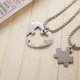 心语拼情钢制吊坠,以爱心包裹着一小块可取下的拼图,象征着彼此之间的完美契合与牵绊。