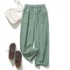 清凉感自然风亚麻长裤 透气舒适、简约风格、绿色格纹设计 240520-2