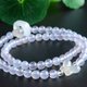 精选天然紫罗兰色玉髓玛瑙6mm圆珠做主材的双圈手串,梦幻般的紫罗兰调,如烟似雾,如梦似幻,轻轻紫紫,浅浅淡淡的紫罗兰色如蝴蝶的彩色翅膀舞动在半空中换起的色彩。圆珠颗颗通透有光泽,对光荧光感明显。搭配天然南红荔枝冻蝴蝶雕刻件,荔枝冻跑环,果冻般的质感哦。整体清雅温柔,精致灵动。
