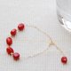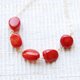 这是由红珊瑚(染色)的扁平滚轮连接而成的手链。