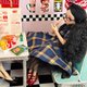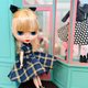 Licca-chan/Licca-chan/Licca-chan衣服/一件/娃娃衣服/聚拢/裙子/套装/娃娃衣服/Blythe/22cm娃娃/Rock'n'Roll/Rockabilly/50s/格纹/蓝色/绿色