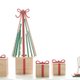 以线条做为圣诞树造型的表现,呈现 现代、活泼的视觉感受,搭配红色缎带礼物盒带,