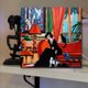 女孩与两只猫 绘画 原创艺术 油画 画布油画 30x30厘米