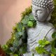本缸选用小叶薜荔(Ficus pumila var. minima)环绕佛像。小叶薜荔是桑科榕属的攀缘型植物,叶片细小而密集,,质地厚实带有蜡质感,呈现柔和的深绿色光泽。其茎蔓柔韧,能紧贴岩面、木头或石材自然延展,具高度附着性与蔓延性。