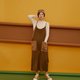 - 垂坠感有弹性的针织布料制作成的吊带直筒宽裤,拼接不同毛料材质的贴式大口袋,在两侧也点缀一点拼接的感觉,让整件吊带裤俏皮可爱。
