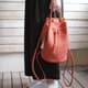 更多详细的亮橘小水桶包介绍请见(真皮拼接小水桶背包 亮橘色)