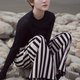 大气的宽直条纹面料在视觉效果上让腿更显长