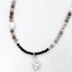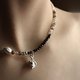 由波斯湾玛瑙、黑花玛瑙、贝壳、不规则银粒、纯银吊坠所编织而成的咖啡/黑色系天然矿石项链。