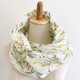 - The fashionable botanical pattern design gives a refreshing impression that looks like summer. Made from high quality 100% Linen fabric, it feels smooth and comfortable to the touch. It is a light and stiff shoulder snood. You can use it comfortably even in the sweaty season.