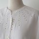 - 复古几何刺绣领宽松欧美版型长袖白色古着衬衫