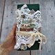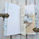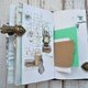 Vintage journal contains: tea dyed paper, archival papers, lace, charms, fabric cover.