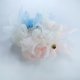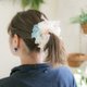 花漾编织发圈,是用撕裁后产生羽毛边的欧根纱,仔仔细细地编织而成。可以看出细腻的工法,是十分耐用的编织品。充满空气的蓬松感,即使放入包包里被压着或着被水泼到也不会弄坏。