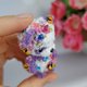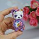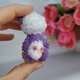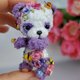 Meet our adorable miniature crocheted collectible teddy panda bear! This little purple bear stands at just 7.5 cm tall and features movable head and paws. With beautiful embroidered flowers and butterflies, this bear is truly a one-of-a-kind collectible. Perfect for adding to your collection or as a special gift for the teddy bear enthusiast in your life. Order yours today!