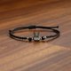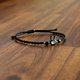 这是一条由黑兔珍珠母贝和缛玛瑙宝石制成并饰有金珠的花边结手链。
