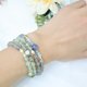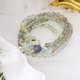 隔珠采切割面月光石、天河石、磷灰石、贝壳珠、18K包金隔珠点缀。可绕4圈在手上,采用日本弹性线制作。
