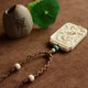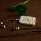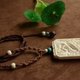 选产自西伯利亚冻土层的猛犸象牙冰料,南派工艺传统手工精雕祥龙吐珠牌。整条龙盘旋飞腾在云里穿梭。雕刻细节精致,线条宛转流畅,刀工娴熟,龙须飘逸,龙鳞分明,神情威武,龙须飘逸,龙鳞分明,龙脊整齐,神态勇武威猛,体态庞大而威猛,威仪棣棣。 气势如虹,祥云袅袅,水波澹澹,皆是精雕细刻。龙嘴吐出水柱和龙珠,龙献宝珠,寓意美好,胸怀凌云,终可一飞冲天。雕刻件正面奶白色,背面有部分为奶黄色,均是自然过渡,质地坚实细密、色泽光滑,手感柔润光洁,牙纹清晰可见。搭配天然绿松石猛犸象牙圆珠做链首,琉璃三眼天珠,猛犸象牙鼓珠,绿松石做链尾,手工编绳工艺。整体大气内敛,典雅古朴。