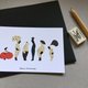 真菌家族 家族人口:123456共六人 最受大家景仰的家族就是身上布满斑点的真菌人。每年最大的活动就是成年礼,在成年礼这一天,家族的长老在每位真菌人身上刺上一个斑点。今年的成年礼只有一个真菌人。因为要平安活到成年对真菌人是非常困难的,所以真菌家族人口是非常稀少的。 尺寸: 100x148mm 材质: 象牙卡纸 单面印刷 产地/制造方式 台湾 手创设计明信片